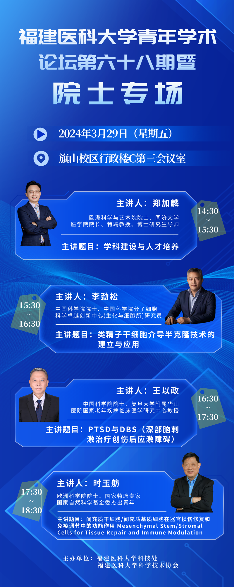 14:30-15:30 | 郑加麟 欧洲科学与艺术院院士,同济大学医学院院长 | 学科建设与人才培养 |