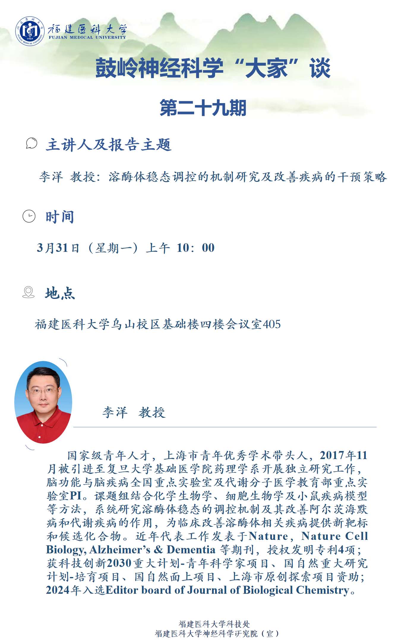 地点:福建医科大学乌山校区基础楼四楼会议室405
