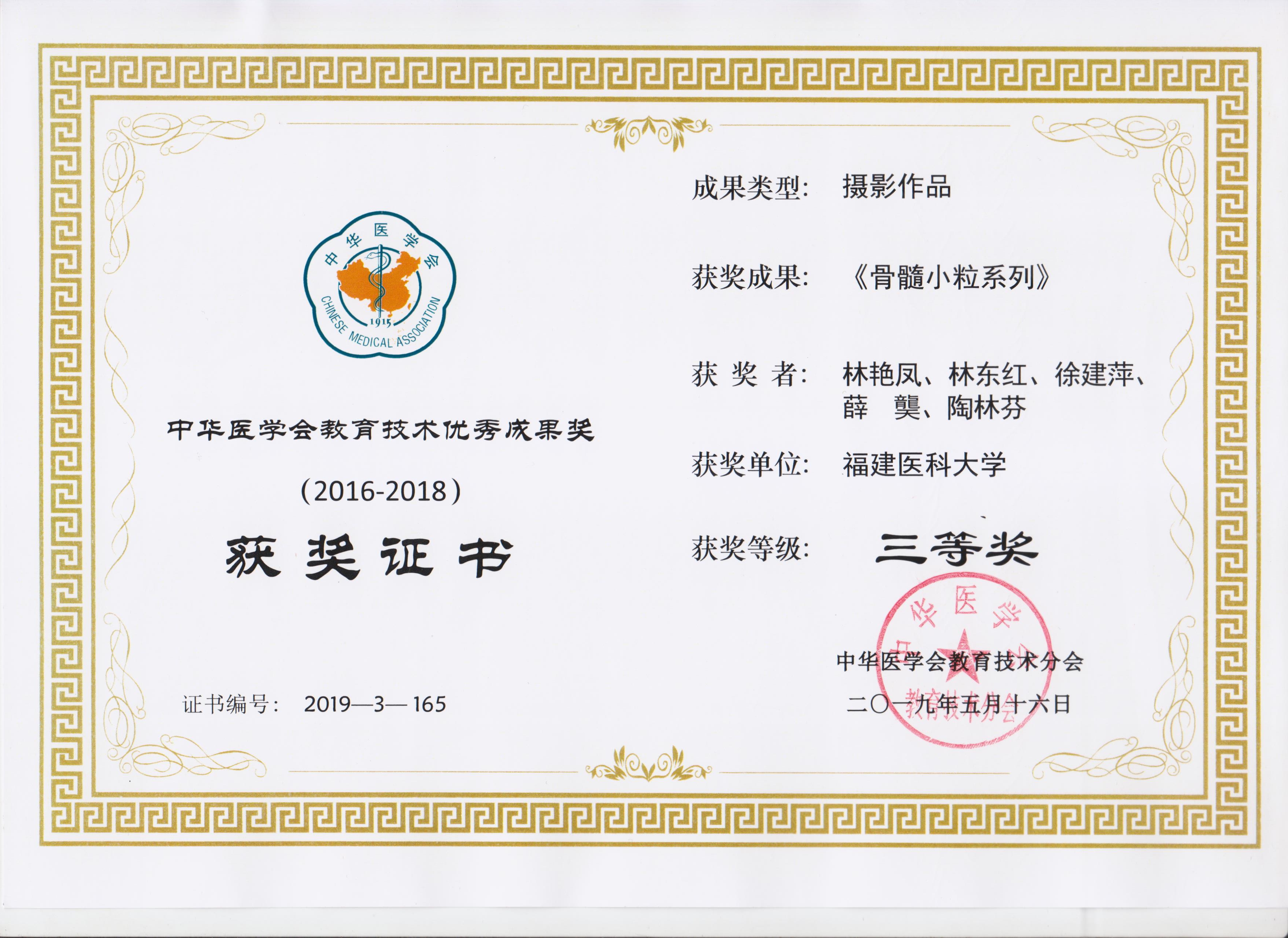 中华医学会教育技术优秀成果奖-摄影作品三等奖